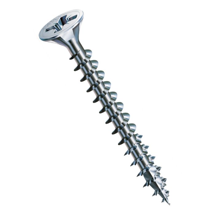 • 4CUT: Ohne Vorbohren (holzabhängig), ihre Spitze verringert wirkungsvoll die Spaltwirkung. Vierkant verdrängt die Fasern des Holzes und reduziert das Einschraubdrehmoment.