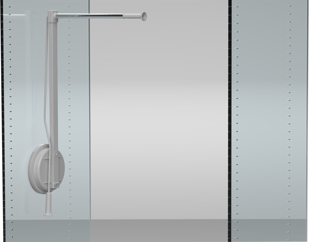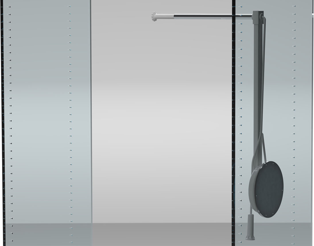 Der Einzellift ist eine bewegliche Kleiderstange, mit der die oberen Schrankräume ausgenutzt werden können und die Gefahr und die Unbequemlichkeit von Leitern und Hockern ausgeschlossen wird.