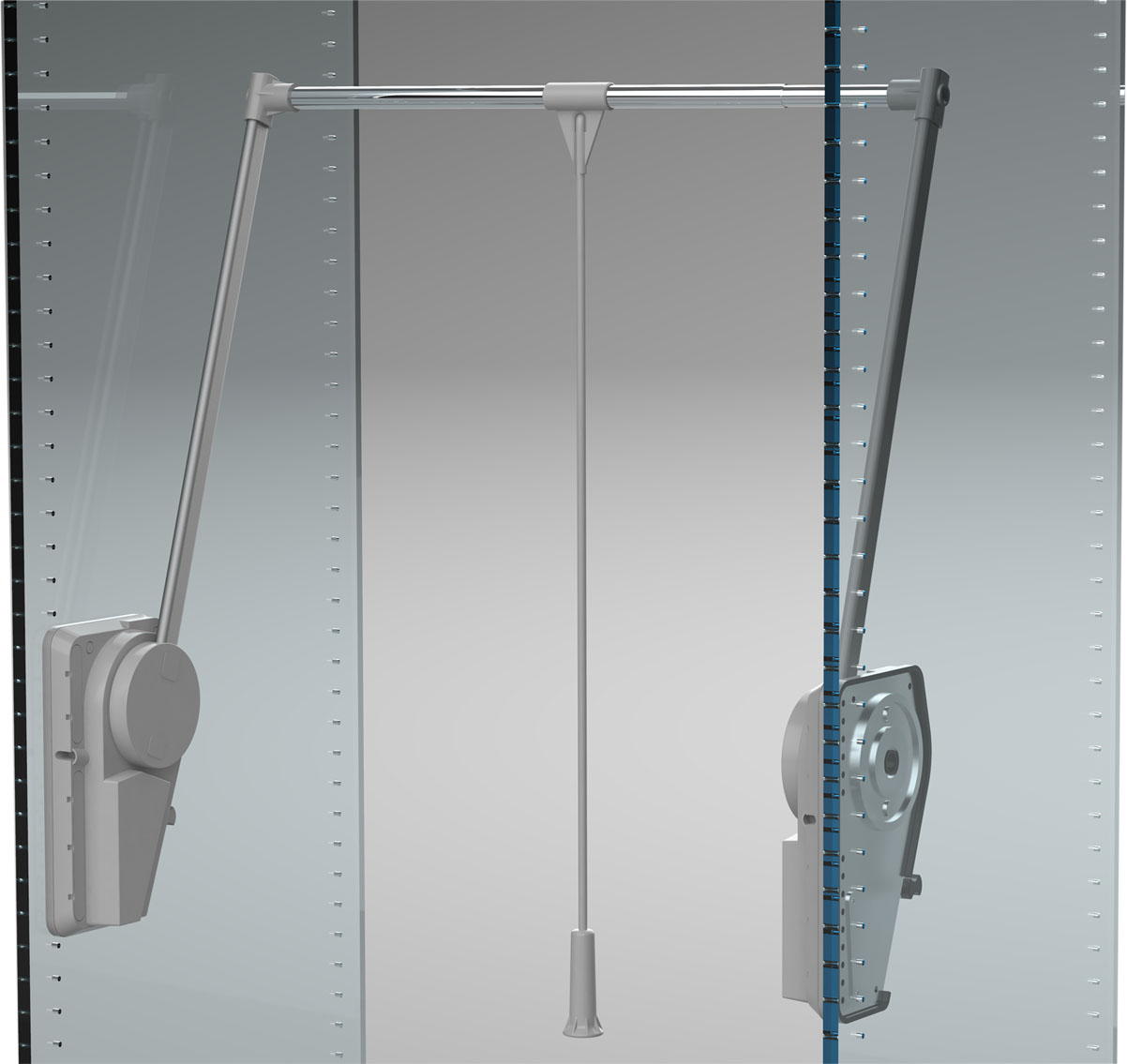 SUPERLIFT ist der einzige auf dem Markt erhältliche Kleiderlift mit "Tragkraftregler" für sämtliche Hebebedürfnisse (Jahreszeitenwechsel) sowie mit einem Regler für die vertikale Position des Arms zur Anpassung an die unterschiedlichen Tiefen der Schränke.