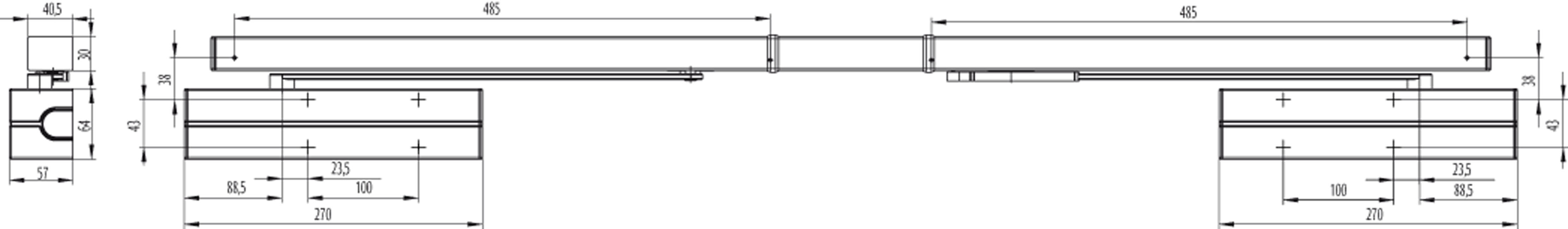 • Alle Bauteile voll in der durchgehenden Gleitschiene integriert