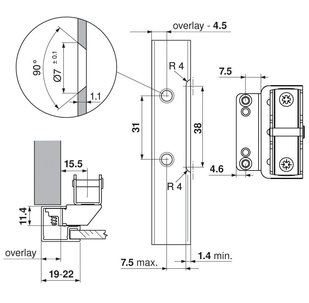 Korpusbefestigung AVENTOS HK-XS Hochklappe