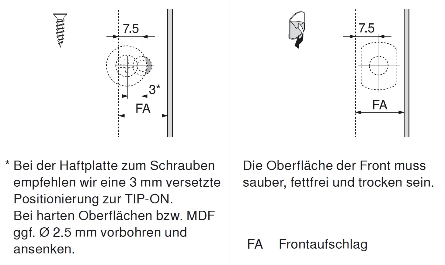 • Für den Einsatz mit Blum-Scharnieren ohne Feder