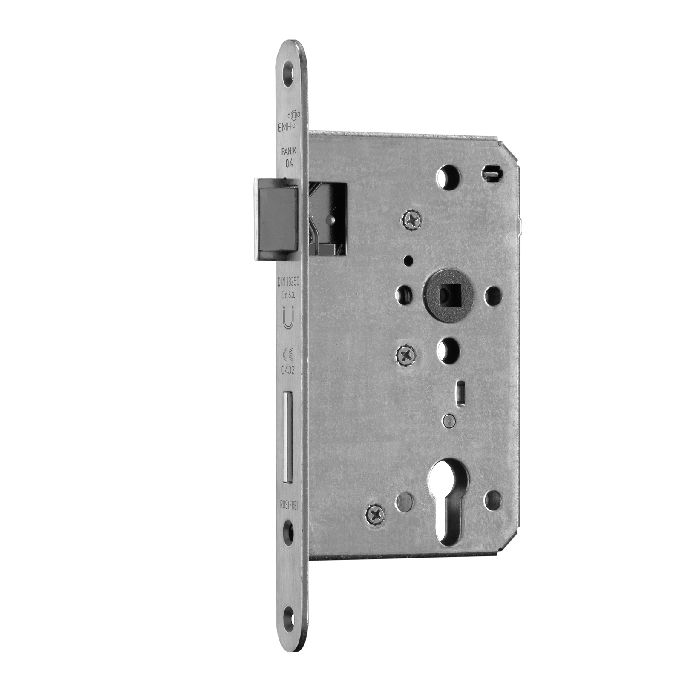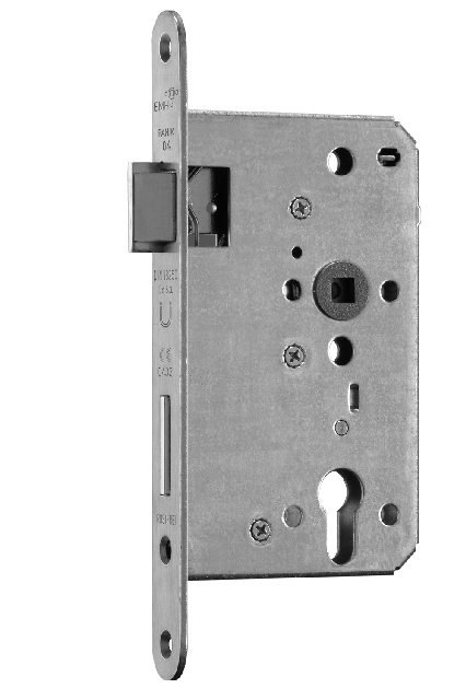 Die Tür hat innen einen Drücker. Durch Drückerbetätigung werden die Falle und der vorgeschlossene Riegel zurückgezogen. Die Tür kann geöffnet werden. Durch Zuschlagen der Tür ist diese von außen gesichert. (Nicht verriegelt, Außendrücker auf Leerlauf).