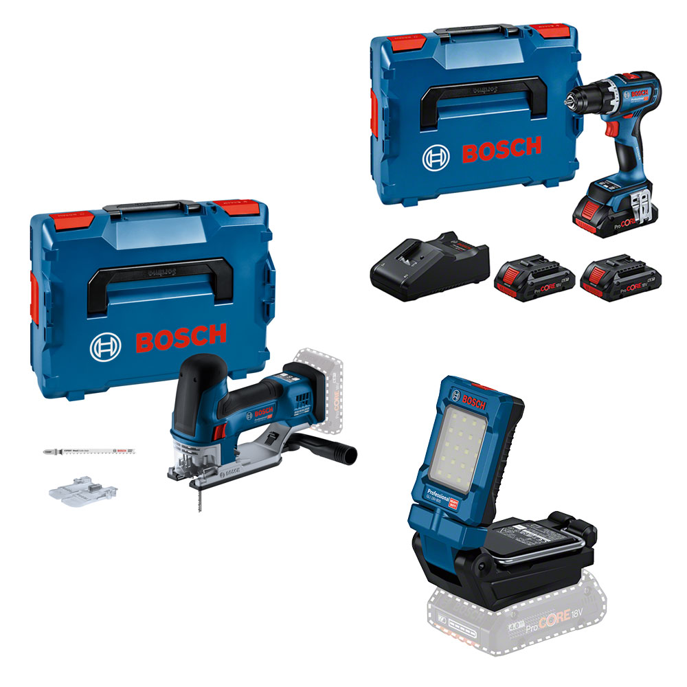 Bosch Aktion SET7 GSR 18V-90 C+GLI 18V-800+GST 18V-155 SC+2xSägebl.+3x4Ah+Ladeg