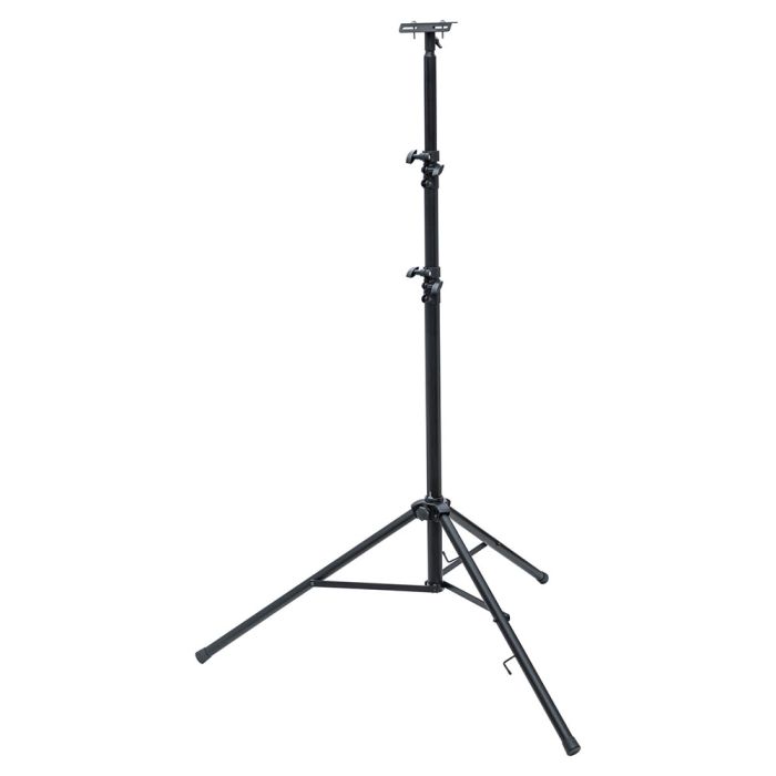Das Bau Teleskop Stativ ST 302 mit Absenkautomatik ermöglicht eine stufenlose Höheneinstellung von 1,24m bis zu 3m. Zudem bietet das Stativ flexible Befestigungsmöglichkeiten, einschließlich T-Bar zur Montage eines einzelnen Strahlers sowie eines Querträgers für die Montage von zwei Strahlern. Die Absenkautomatik gewährleistet ein kontrolliertes Absenken für zusätzliche Sicherheit. Das Teleskop Stativ mit einer maximalen Traglast von 20kg und einer integrierten Kabelhalterung überzeugt außerdem anhand folgender Eigenschaften: