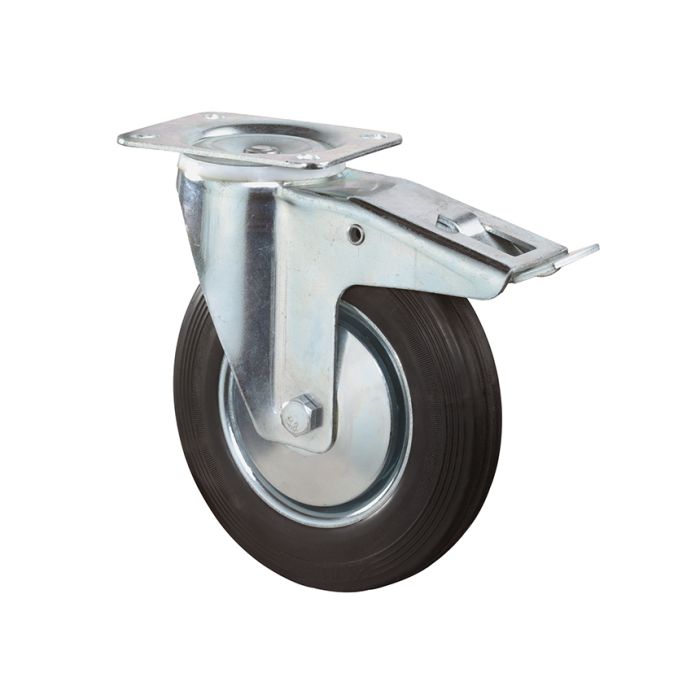 BS Lenkrolle Gummirad Stahlfelge Platte mit Feststeller 80mm