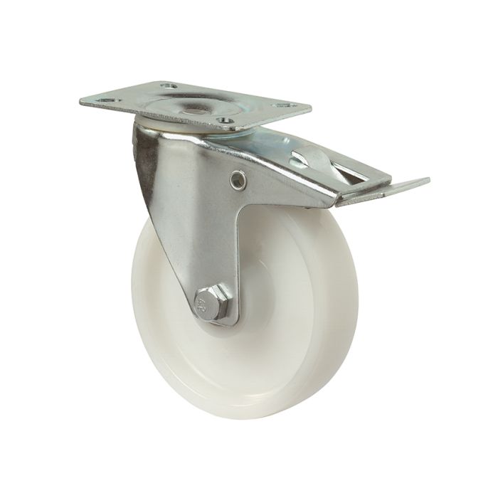 BS Lenkrolle Kunststoffrad Rollenlager Platte m. Feststeller 80mm weiß