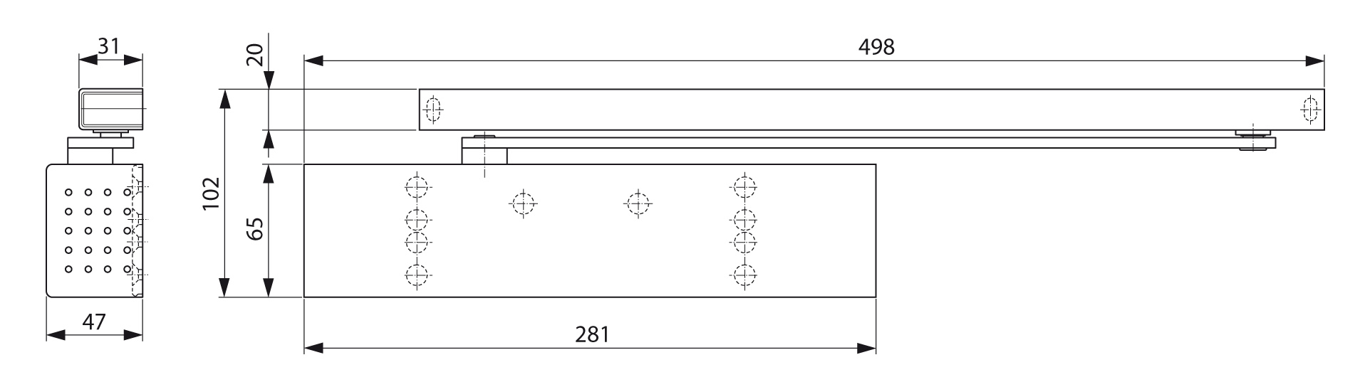 • Schließgeschwindigkeit stufenlos einstellbar im Bereich 180°-15° und 15°-0°