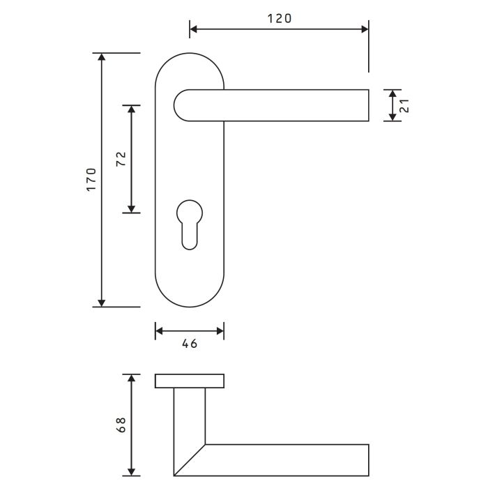 • Festdrehbar gelagerter Drücker. DIN Links / DIN-Rechts verwendbar