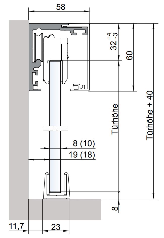 Decke vorraus. Bei Fliesenboden empfehlen wir die Bodenführung eventuell