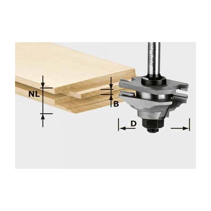 • Durch Umbauen des Fräsersatzes können Nut und Federprofil mit einem Werkzeug gefräst werden