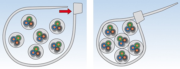 Der fischer Kabelbinder UBN ist eine wirtschaftliche Befestigung aus hochwertigem Nylon. Zur Montage wird der Kabelbinder einfach um den zu fixierenden Gegenstand gelegt und das Band durch den Kopf des Kabelbinders gezogen. Durch das Einrasten der Zunge in der Verzahnung wird der Kabelbinder dauerhaft befestigt. Der Kabelbinder ist ideal, um Elektrokabel, Stahlpanzerrohre und Kunststoff-Isolierrohre zu bündeln.