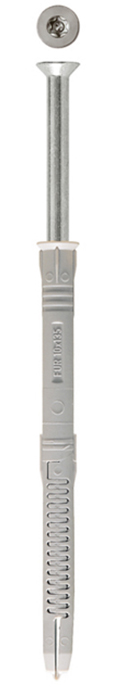 Der fischer Langschaftdübel FUR T besteht aus einer Dübelhülse aus hochwertigem Nylon und einer Senkkopfschraube aus galvanisch verzinktem Stahl. Der FUR-T wird in der zeitsparenden Durchsteckmontage gesetzt. Beim Eindrehen der Schraube verspreizen im Vollbaustoff die Lamellen gleichmäßig gegen die Bohrlochwand.