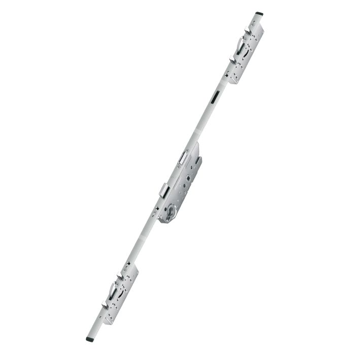 Mehrfachverriegelung mit Schlüsselbetätigung für Haus- und Objekttüren aus Kunststoff, Holz und Aluminium. Mit Stahl-Schwenkriegel. Diese Riegelkombination vereinigt die Vorteiler der Schwenkriegel mit denen der Bolzenriegel. So wird für einen leichten Anzug durch optimale Kraftverteilung bei verstärkter Sicherheit gesorgt.