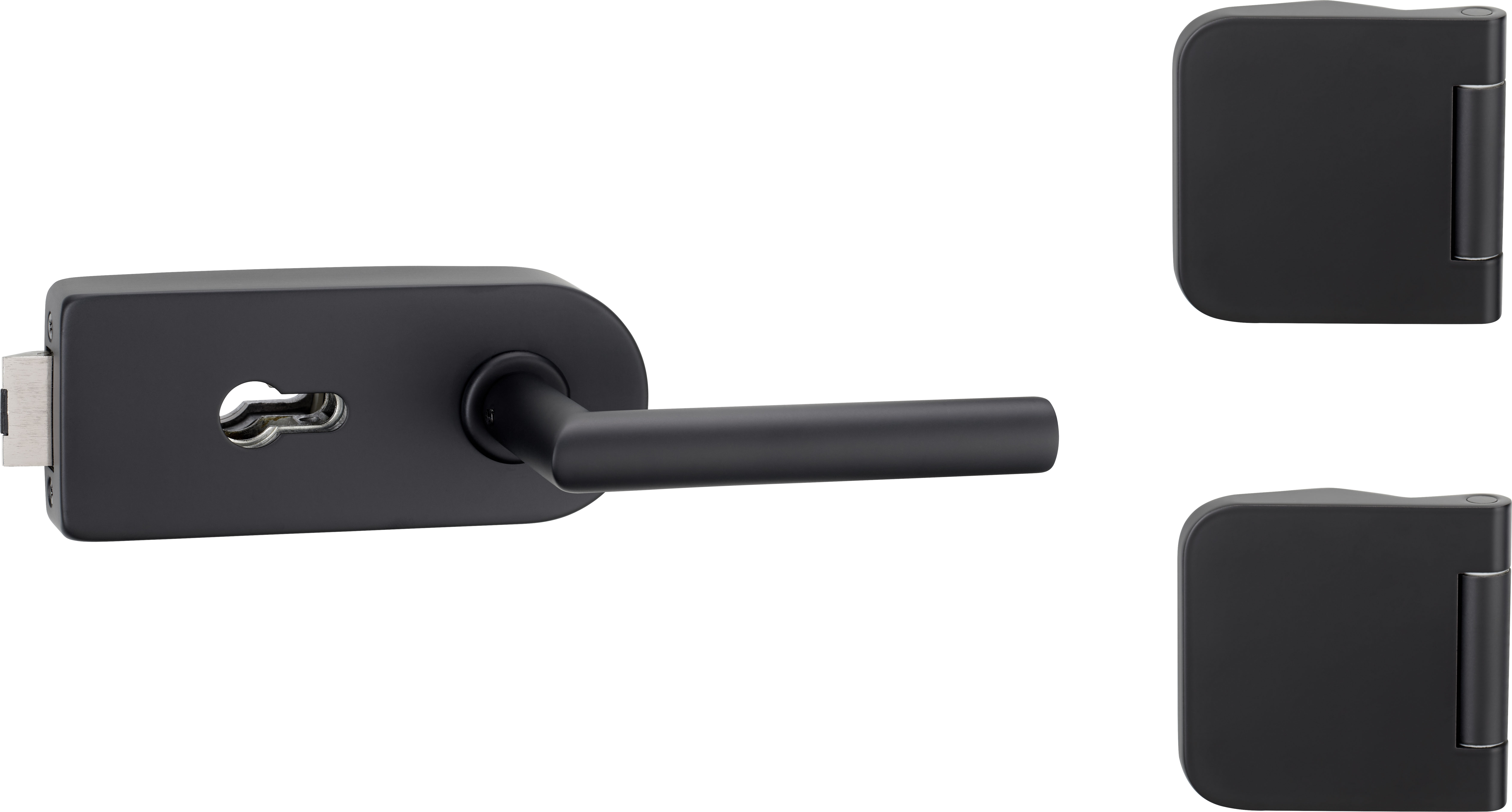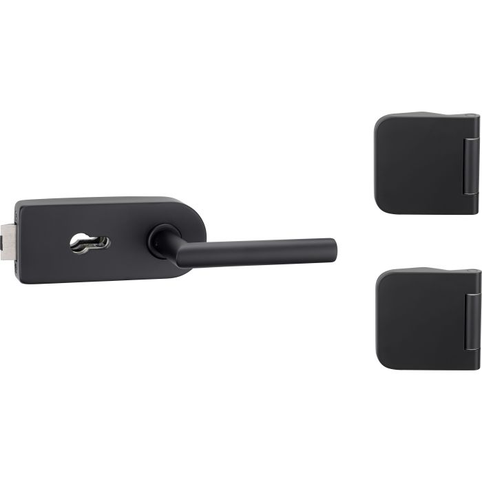 Glastürbeschlag Glastürschloss Set mit Scharnier PZ Tiefschwarz 3-teilig