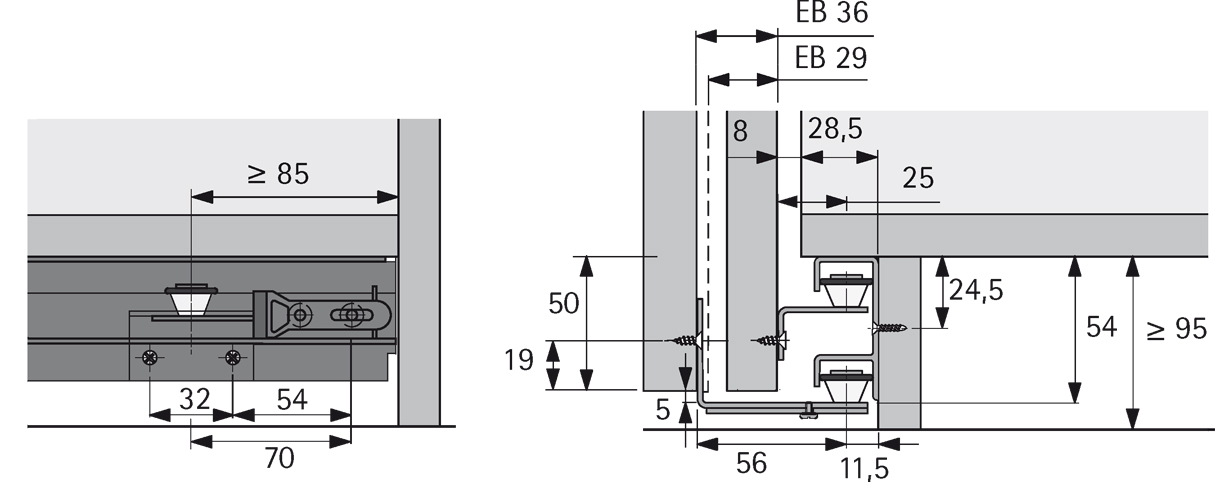 Hettich Führungsprofil STB12 Topline 1/22/25/27/L