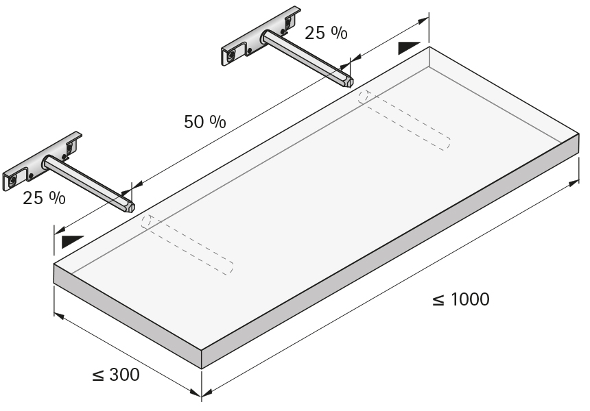 • Verdeckte Montage hinter dem Regalboden