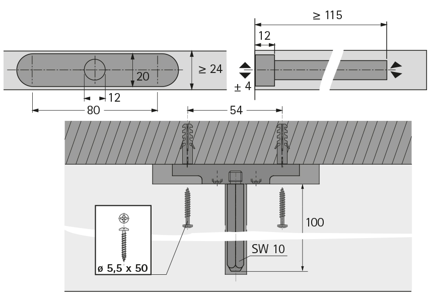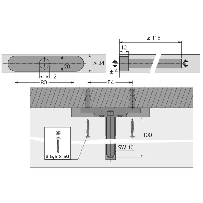 • Höhenverstellung: ± 4 mm