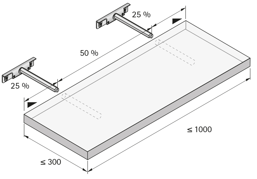 • Verdeckte Montage hinter dem Regalboden