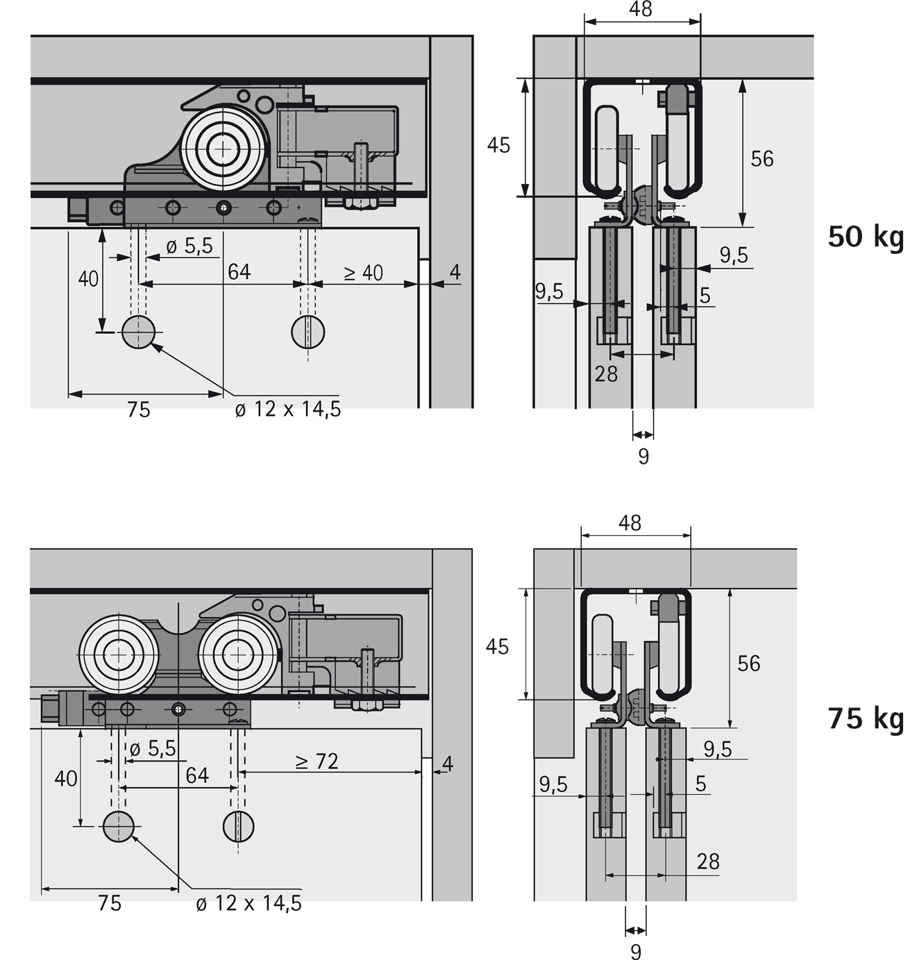 Hettich Topline1 Oberer Türlauf Set Belastbarkeit 50kg