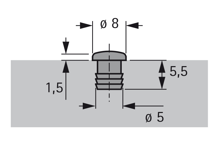 Hettich Türanschlagdämpfer zum Eindrücken Ø 5 mm