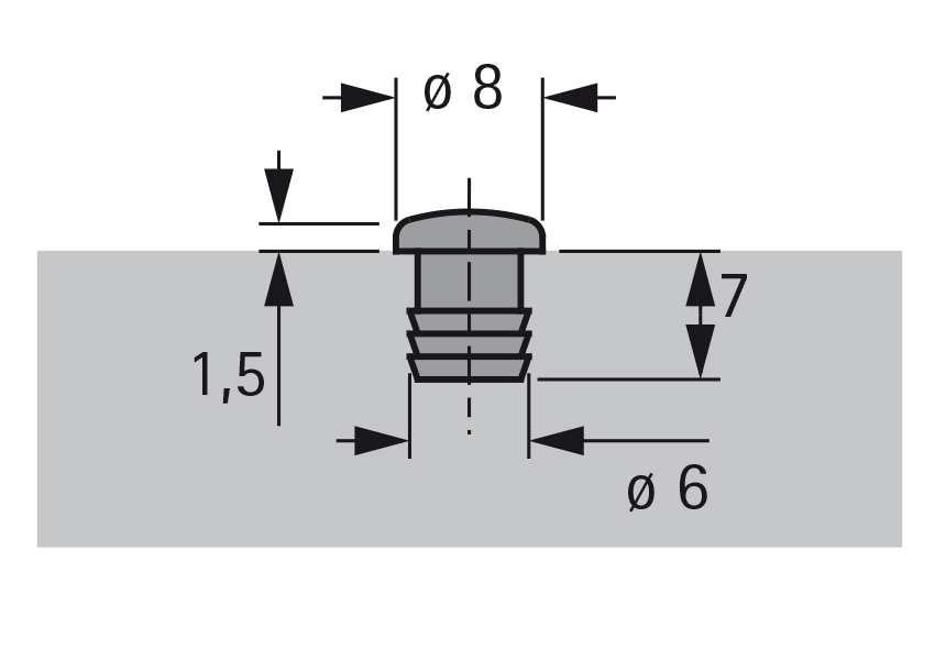 Hettich Türanschlagdämpfer zum Eindrücken Ø 6 mm