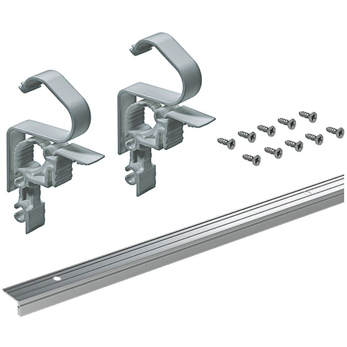 Set enthält ein Führungsprofil mit vorgebohrten Anschraubpositionen, inklusive Befestigungsmaterial und Profilmontageklammer