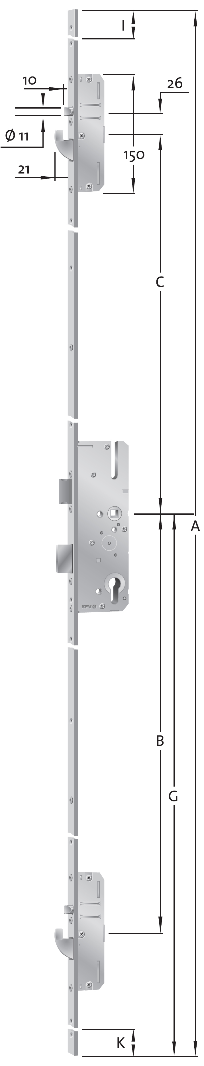 KFV Mehrfachverriegelung AS2750 45/92/8/24mm P6 B298 2mm abges. SKG verz.