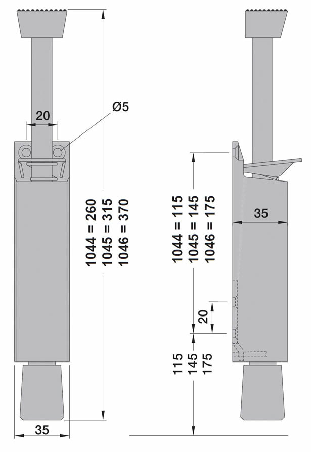 Tretbolzen soweit heruntergedrückt bis der Stopfen sich auf dem Boden