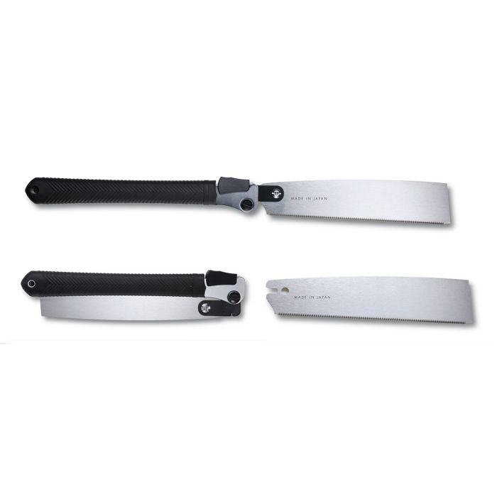 Japanische Handsägen mit hochwertigem Kunststoffgriff, Sägeblatt einklappbar, platzsparend bei gleichzeitigem Schutz der Zahnung.