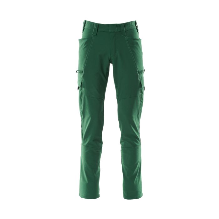 Mit wasserabweisendem Finish. Ultimatives Stretchgewebe mit geringem Gewicht und guter Strapazierfähigkeit. Der Stoff ist fast nicht auf der Haut zu spüren, da die Taschen im Design integriert sind. Zweifache Kappnähte an den Beinen und im Schritt. Niedrige Taille. Hosenbeine sind ergonomisch geformt. Gürtelschlaufen. Hosenschlitz mit Reißverschluss. Vordertaschen. Gesäßtaschen. Schenkeltasche mit Handyfach, Patte und verdecktem Druckknopf und integriertem ID-Kartenhalter. ID-Kartenhalter ist abnehmbar. Schenkeltasche mit Zollstocktasche. Mit Druck und Reflexen.