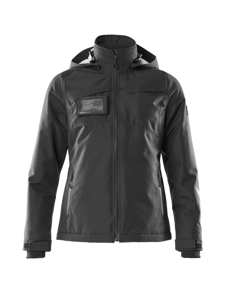 Ärmel mit CORDURA®-Verstärkung. Atmungsaktiv, wind- und wasserdicht. Damen-Passform. Regulierbarer Gummizug am unteren Saum. Vordertaschen mit Reißverschluss. Kapuze ist abnehmbar, gefüttert und mit verstellbaren Elastikschnüren versehen. ID-Kartenhalter ist abnehmbar. Innentasche mit Reißverschluss. Verschluss mit Reißverschluss und doppelter Wetterschutzleiste. Verschluss mit Reißverschluss und inwendiger Wetterschutzleiste. Verschluss mit Reißverschluss und Wetterschutzleiste. Reißverschluss im Futter am Rücken zum Anbringen eines Logos/einer Stickerei. Mit CLIMASCOT® Lightweight Insulation. Mit Druck und Reflexen. Rippenbündchen (verdeckt unter der Wetterschutzleiste) an den Handgelenken. Nähte sind verklebt.