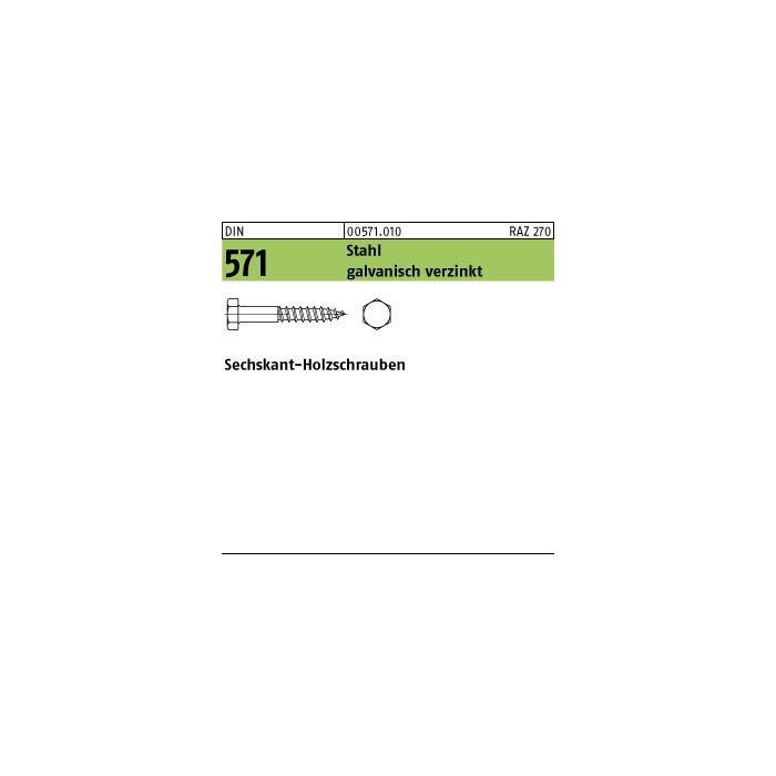 Sechskant-Holzschr. DIN 571 Stahl 10x150 galv.verzinkt gal Zn VE=50St
