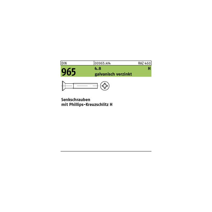 DIN 965 4.8 H galvanisch verzinkt Senkschrauben mit Phillips-Kreuzschlitz H